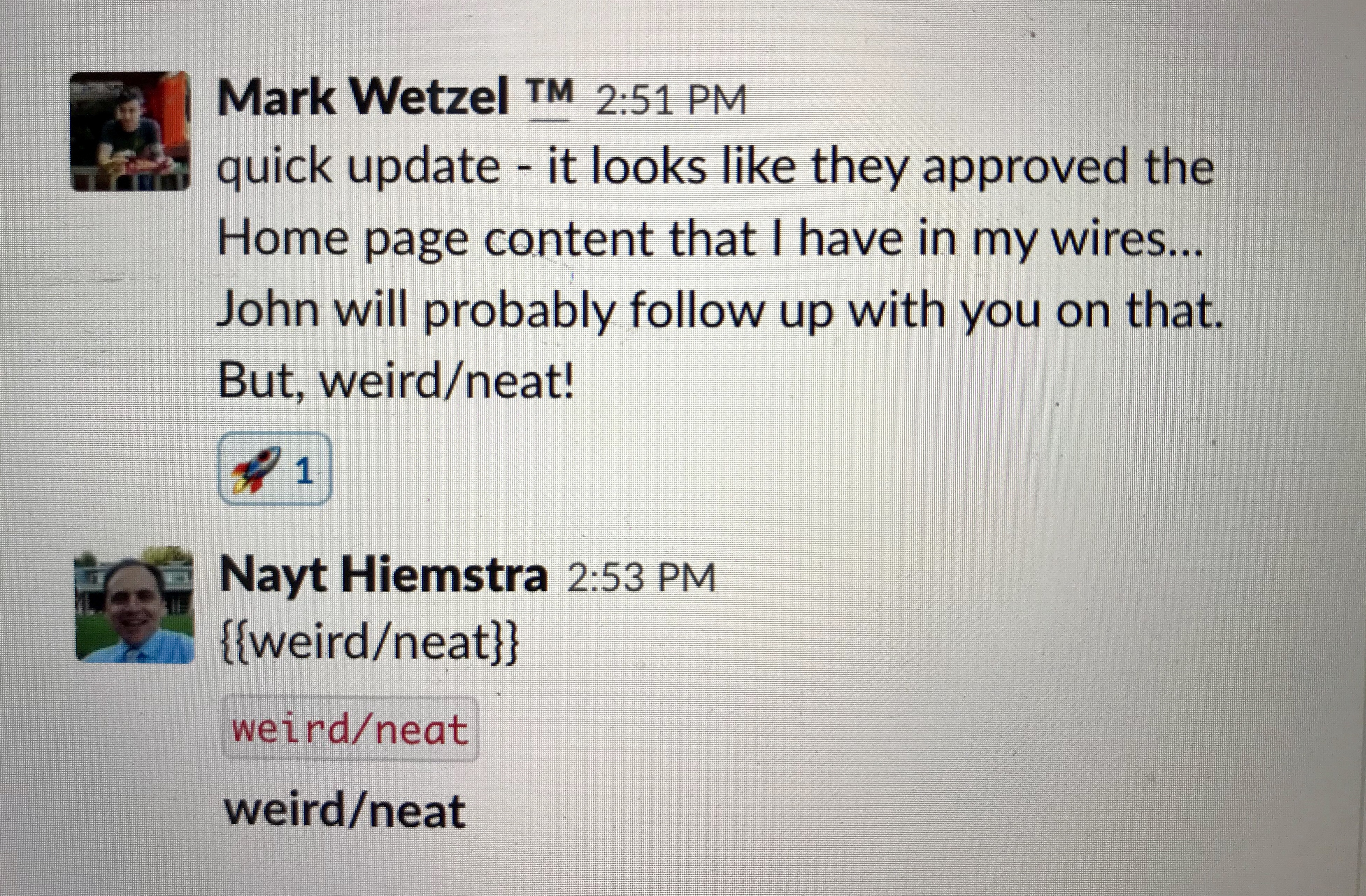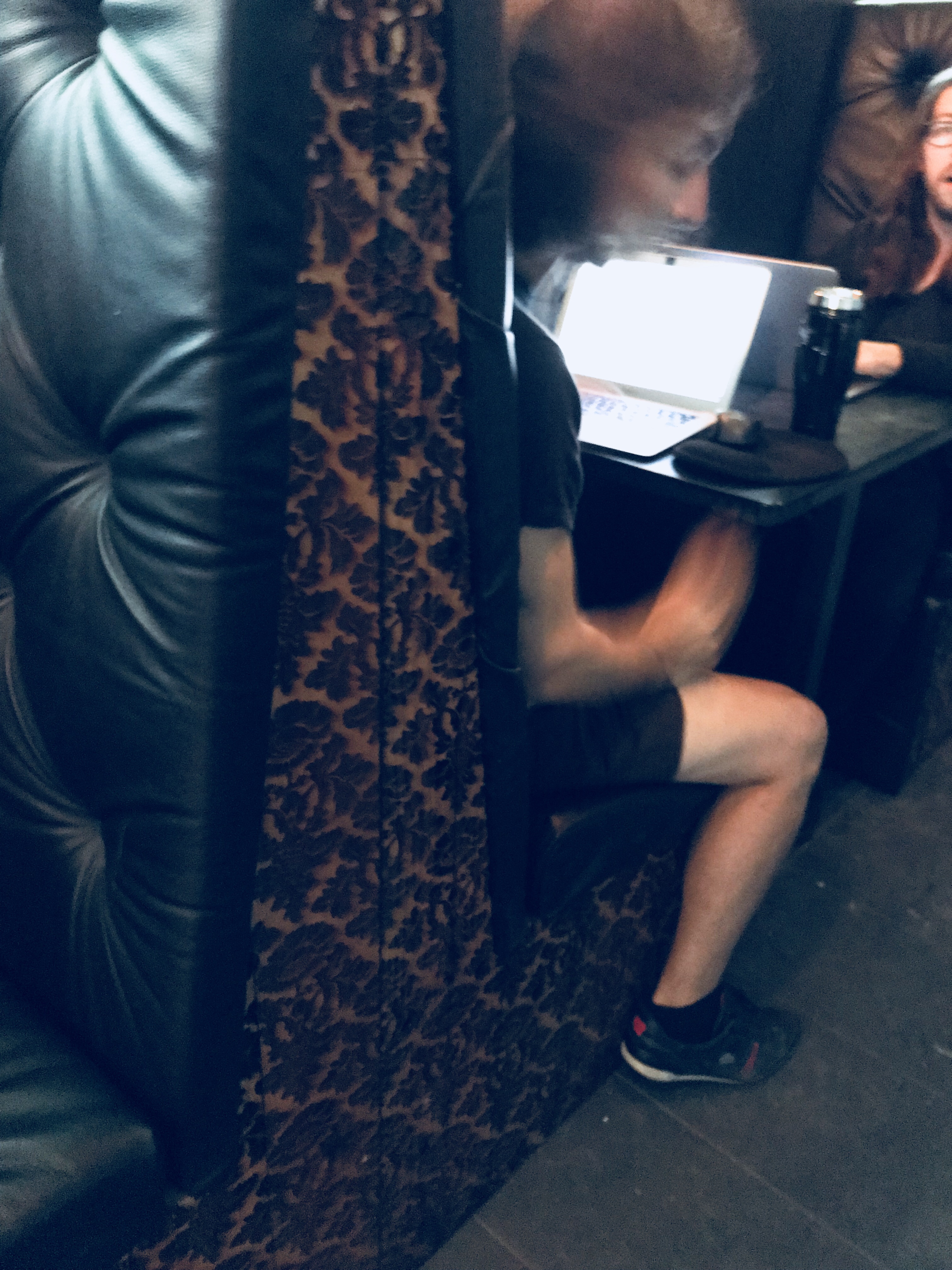 He’s not giving me a shoulder massage (though that would be weird/neat).